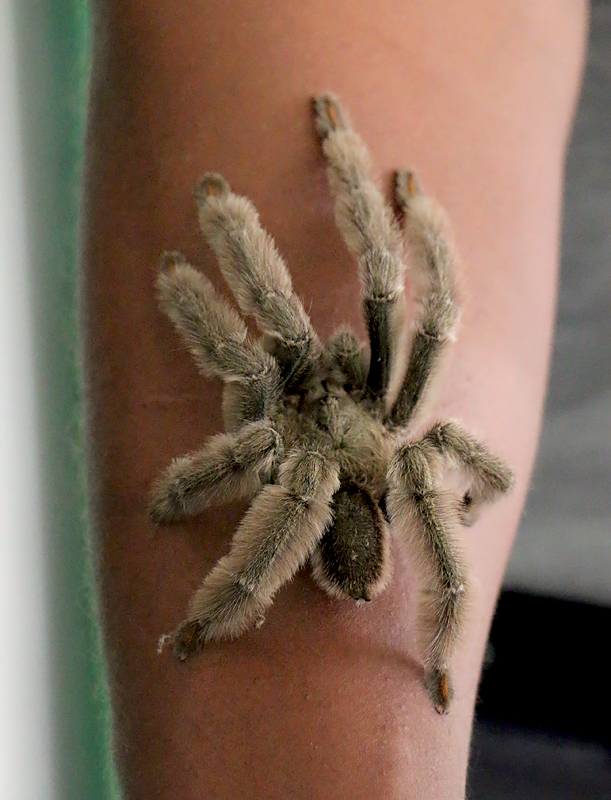 ChevronTarantula_1300 Published February 2, 2016 at 611 × 800 in Island Hopping: Trinidad & Tobago (Part 2) ← Previous Next → Less endearing to some, this endemic Trinidad Chevron Tarantula (Psalmopoeus cambridgei) was making itself at home in the centre’s main house. We saw it every day, although I never quite got used to the idea that it could be anywhere.